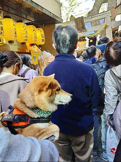 境内はさすがに大変なので、抱っこだった柴犬まいちゃん。