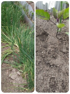 茄子の根本を掘り返し、