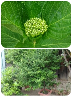 気温が上がってきて、紫陽花の蕾が出てきました。