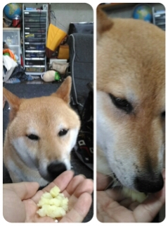新じゃがを幸せそうに食べるワンコ…