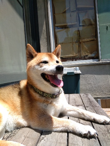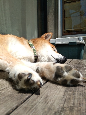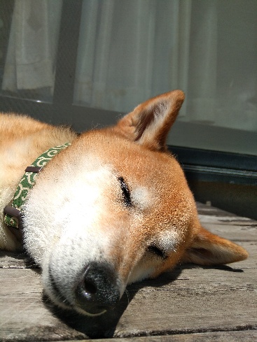 柴犬さんはウッドデッキでグッスリお昼寝。