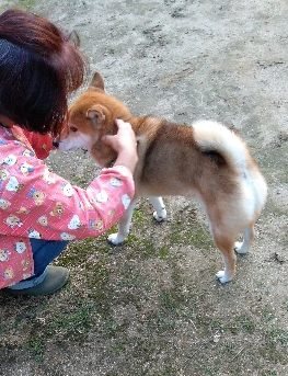 庭に出ていると、遊びに来られた近所の方にモフモフしてもらい満足げ(笑)