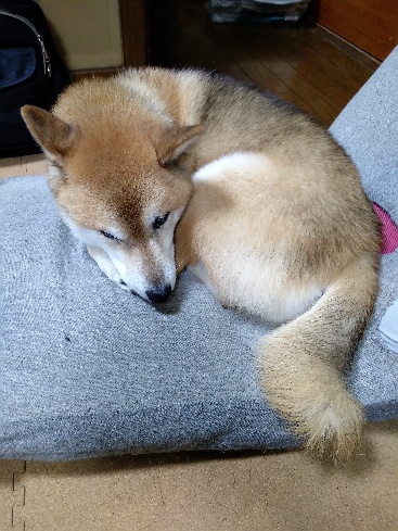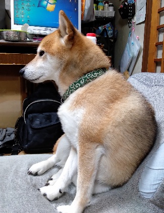 お部屋に入ると、パソコン前をどーんと陣取る柴犬さん。