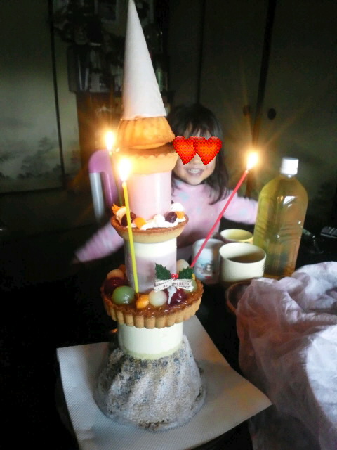 娘のクリスマスソングの後、ロウソクを吹き消して切り分けましたが…