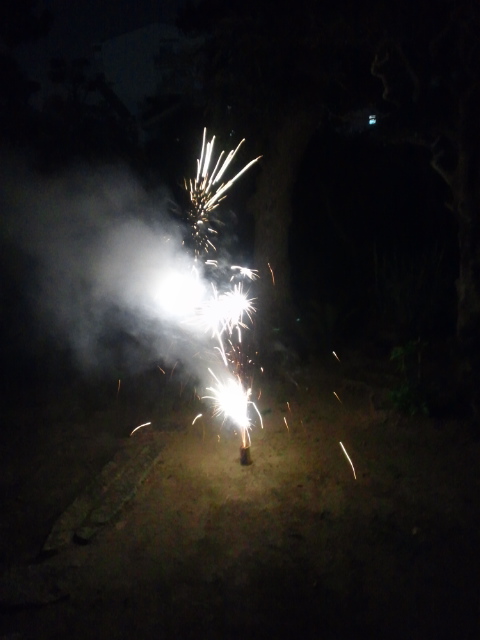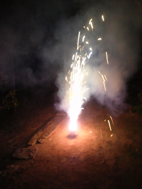 娘と息子がおのおの5本合計10本をやり終えるといよいよ吹き上げ花火です。