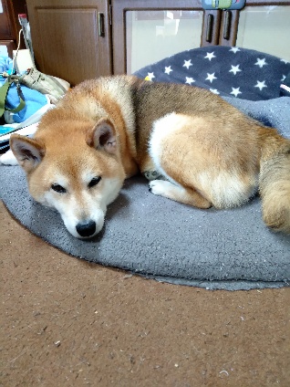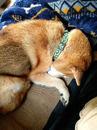 こんなときは早く帰ってお昼寝なんだワンの柴犬さくらに