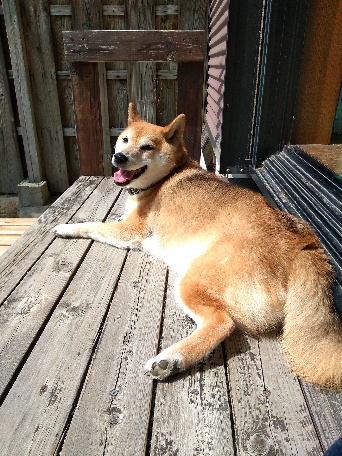 柴犬さくらは、ウッドデッキでノンビリしてました。