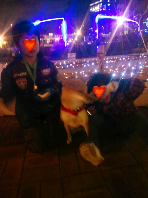 さくらちゃんも一緒だったのですね。わんこの目にはどう映るんでしょうね?さくらちゃんには、家族と一緒の夜散歩がなにより楽しかったのではないでしょうか。
