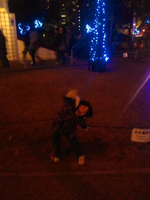 さくらも初めてのイルミネーション散歩なので興味深々でした。