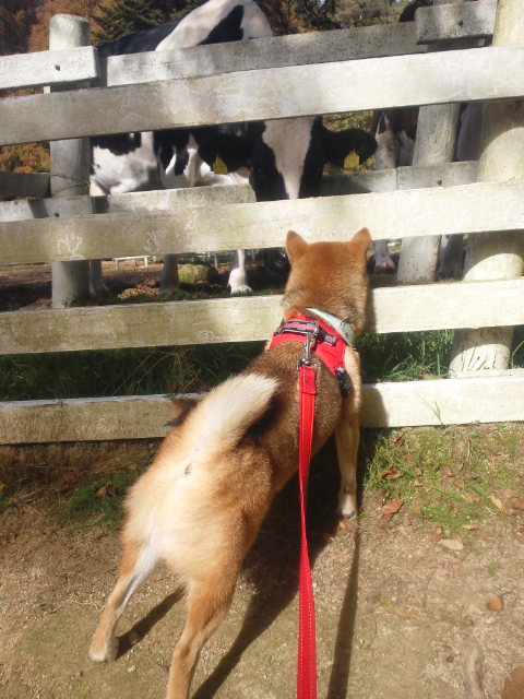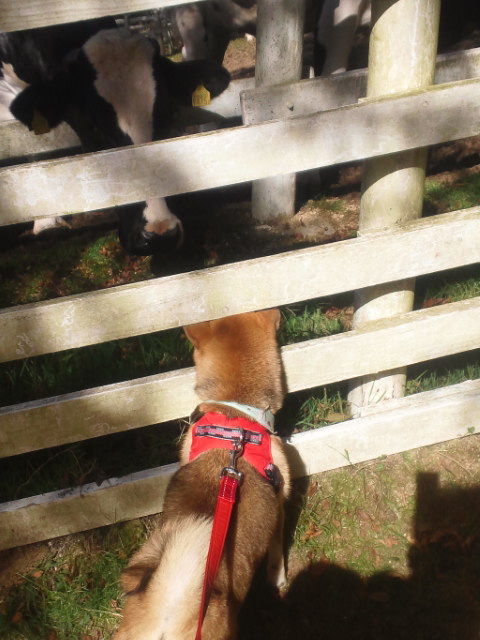 なかなか、牛の存在に気がつかなかった柴犬さくら。