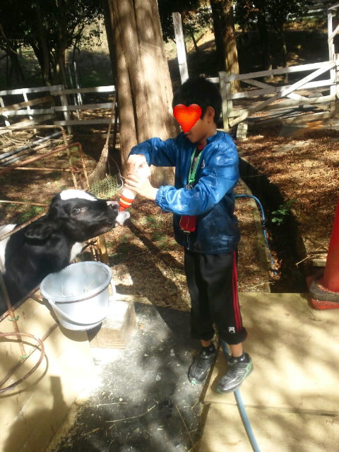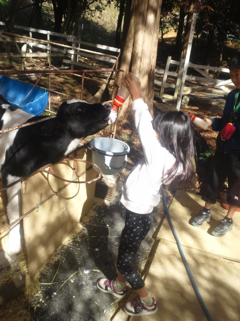 その一つが、仔牛のミルクやり。