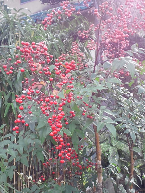 南天の実が、赤々としています。