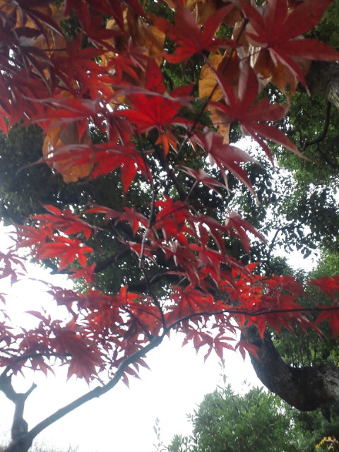 紅葉も真っ赤で、落葉しはじめてます。