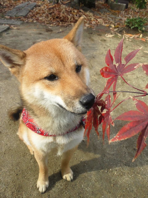 柴犬さくらに紅葉を見せると…