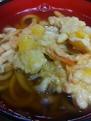「うんどん(うどん)」に「なんきん」「ぎんなん」「れんこん」「にんじん」のかき揚げを乗せたものと、