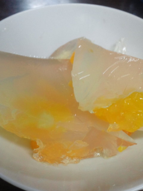 キンカン(の代わりのミカン)ゼリー(カンテン固め)