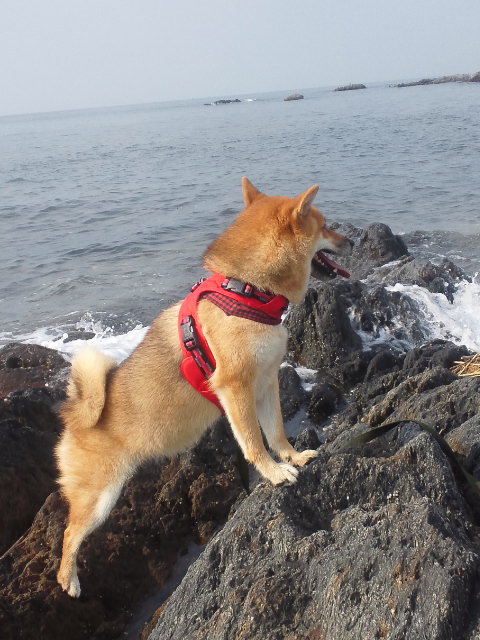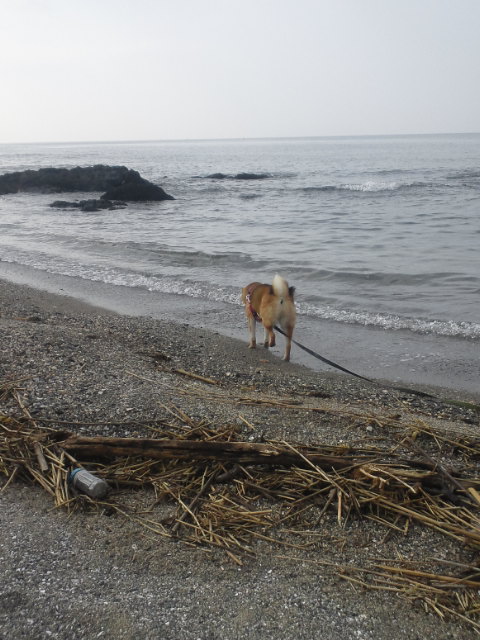 しょうがないので、柴犬さくらは、浜の上をウロウロ。