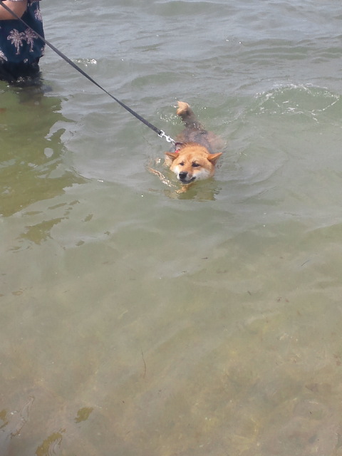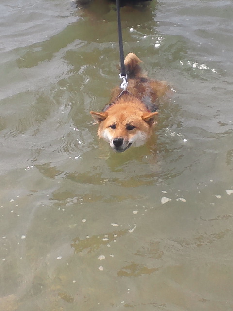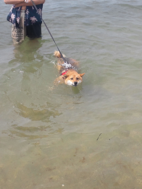 初泳ぎ柴犬さくら