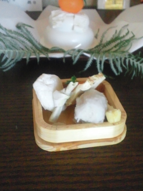 まずは、神棚にお雑煮の具だけをお供えします。