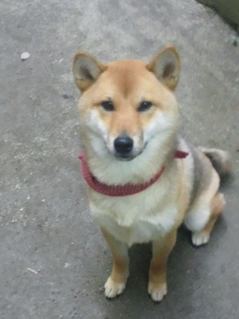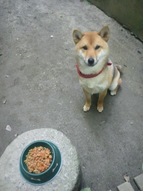 何時もより2時間遅い夕食をお利口に待つ柴犬さくらに、