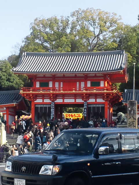車で四条駅のそばまで行き、そこから徒歩で八坂神社へ…