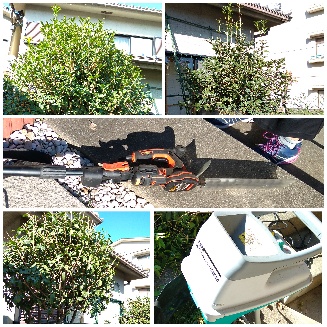 金木犀は花芽が早いから早く剪定せよと命令がくだったので、頑張りました。