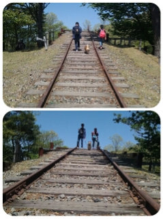 本物のレールの上、なかなか歩く機会がないので、