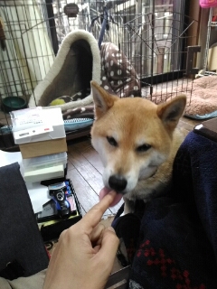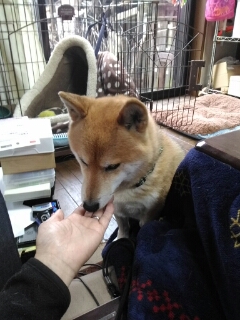 で、千羽鶴を眺めてから、何かクレクレの柴犬さん。