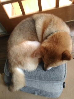 お家で丸まるのが一番安全なんだワン!の柴犬さくらに、