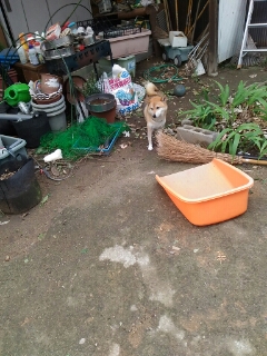 さて、台風一過で外に出た柴犬さくら…