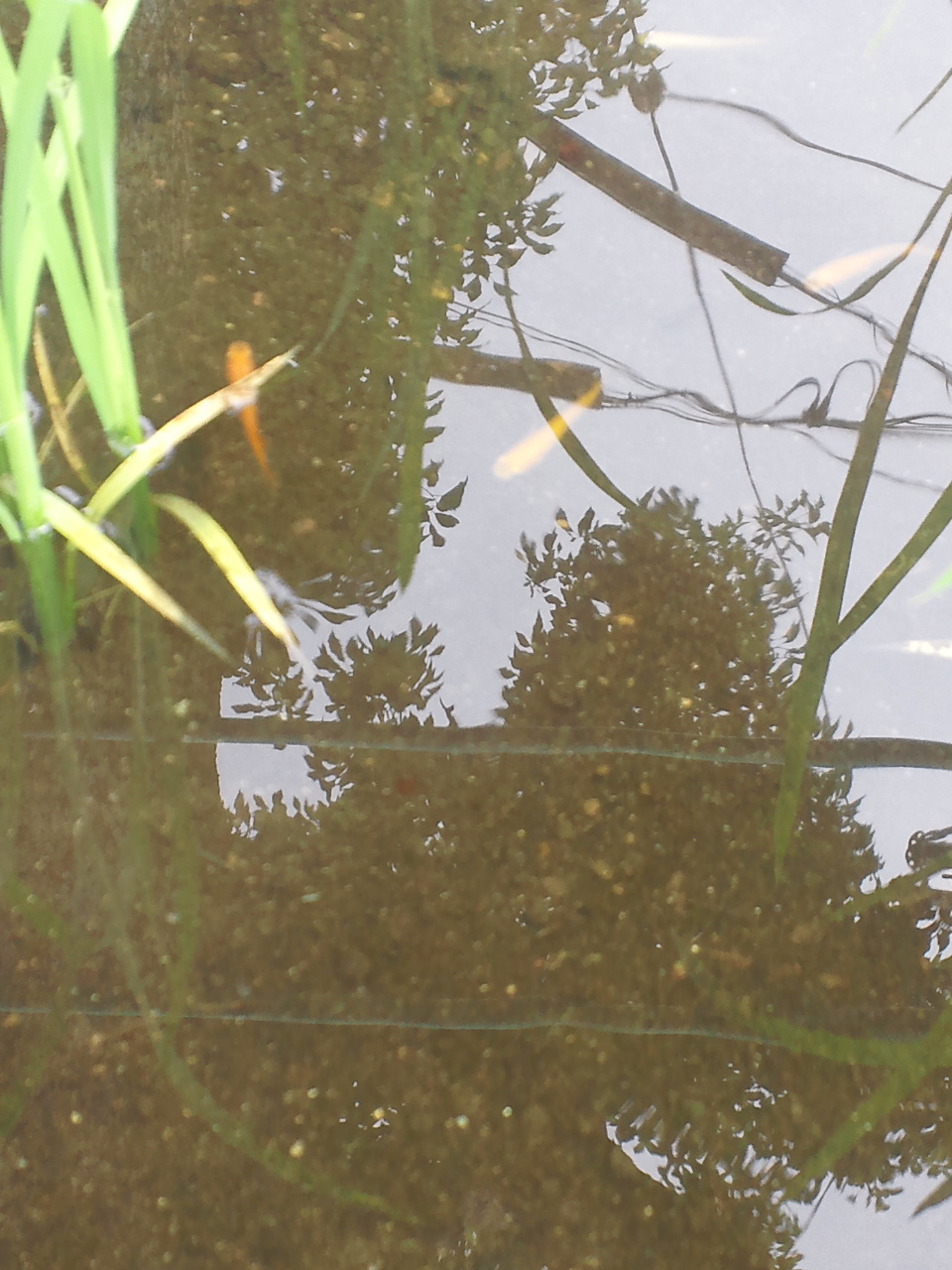 心配していたブルーシートの水田にはなしたメダカですが、元気に泳いでいました♪
