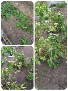 茄子、ピーマンが倒れ、収穫間近の生姜被害も甚大( ノД`)…