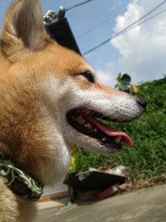 外に出た柴犬さくら、すぐにヘロヘロ。