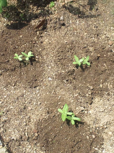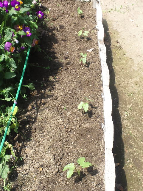 ゴーヤのグリーンカーテンの前に、小さなヒマワリが沢山咲く予定です。