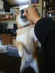 パンさえ有れば、2本足で、踊り出す柴犬。