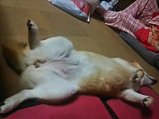 はなも一番涼しいところで寝ています(^^♪
