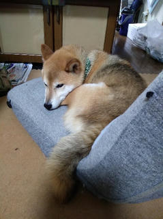 そんな収穫してる間に、既にバテバテの柴犬さくら