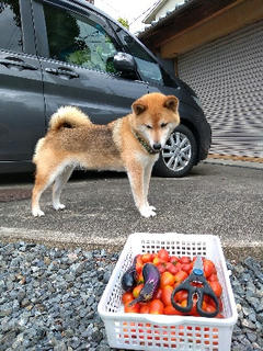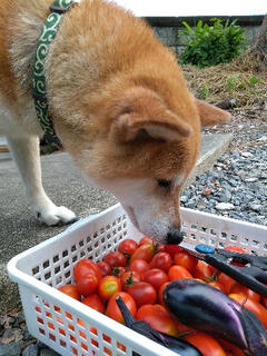 トマトは食べないけど、一応チェックにやってくる柴犬さくら。