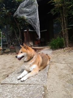 さて、畑の手入れしている間の柴犬さくら