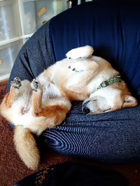 雨が降るなら、お家でお昼寝しとくんだワンの柴犬さくらに、