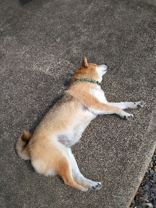 最近では暑いので、畑仕事をしていると、柴犬さくらは行き倒れます(笑)