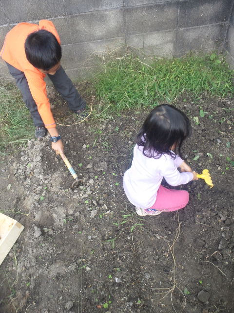 くまでを使って、子ども達がホリホリ。