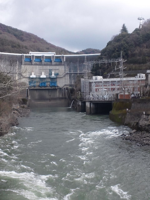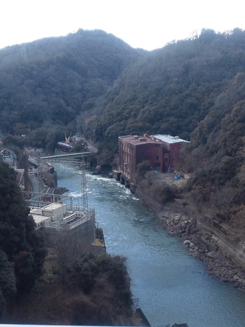 ダムの上からは、発電所が見えています。
