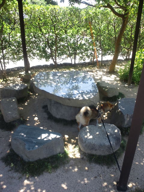 中は綺麗に手入れされた庭園があり、木陰になる休憩所も在ります。
