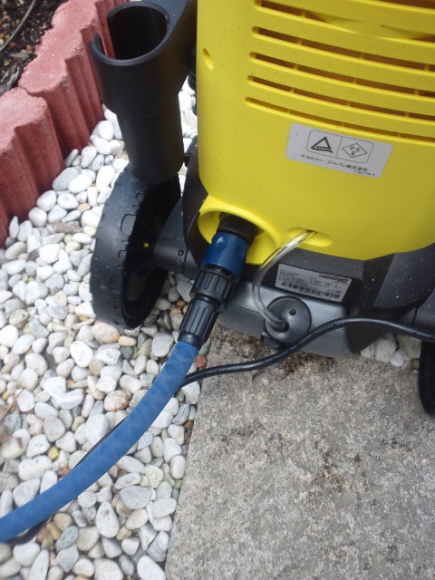 水道と高圧洗浄機を繋ぐホース、実は普通のホースを繋いでも平気なんです。