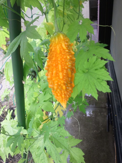 ほっておくとゴーヤは緑色から綺麗なオレンジ色に変わります。