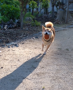ボールを咥えてこちらへ走ってくるお顔の可愛いこと!
