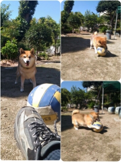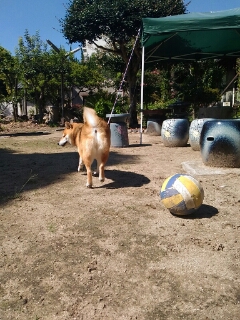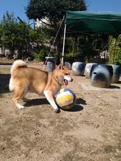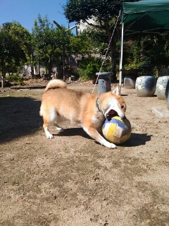 柴犬さくらも、ボールとバトル。