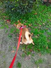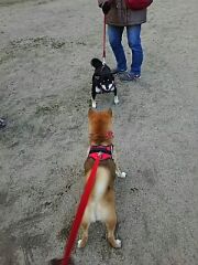 気が付けば目の前にワンコが!ってことね。さくらちゃんびっくりしてガウッたのかな?