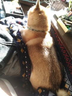 何故かパパの膝の上で日向ぼっこ( ̄ー ̄)